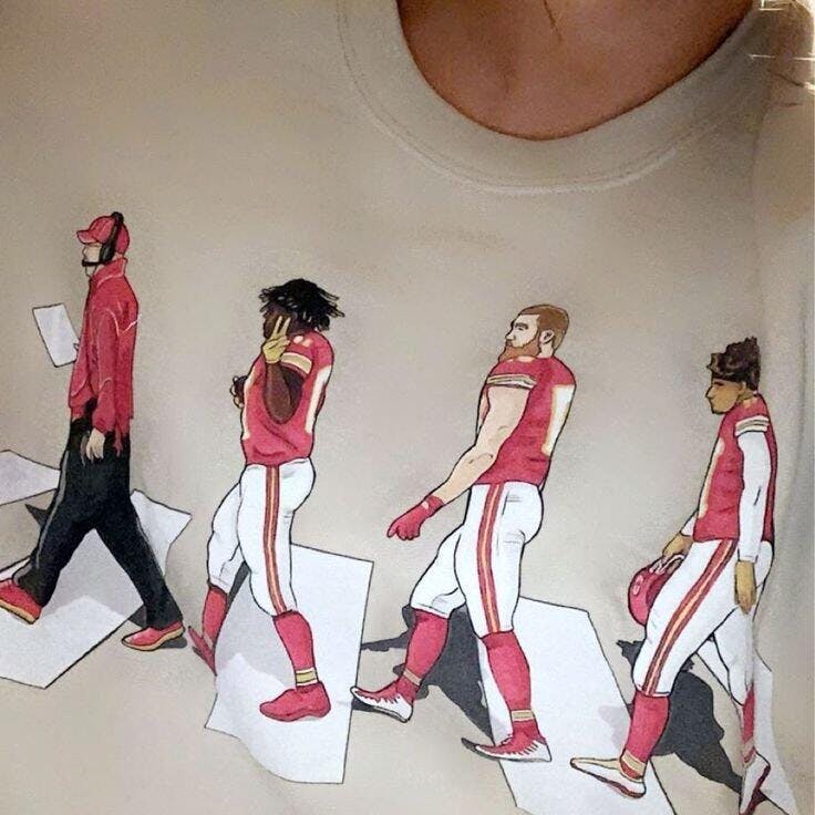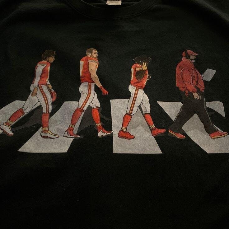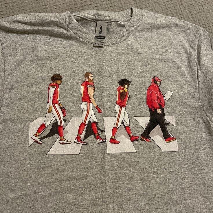 Kansas City Chiefs Mahomes Kelce cross Abbey Road Shirt Unisex Heavy Cotton Tee