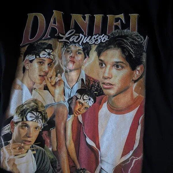 Embrace the legendary spirit of The Karate Kid with this vintage-inspired Daniel Larusso tee. Featuring iconic imagery celebrating the timeless martial arts classic, this unisex design appeals to devoted fans and casual admirers alike. Crafted for comfort and durability, the shirt delivers authentic retro aesthetics with modern wearability. Perfect as a gift for any fan of 80s cinema or martial arts culture, it makes a statement piece that transcends generations. Whether you're channeling your inner sensei or simply honoring a cinematic masterpiece, this tee combines nostalgia with everyday versatility.
