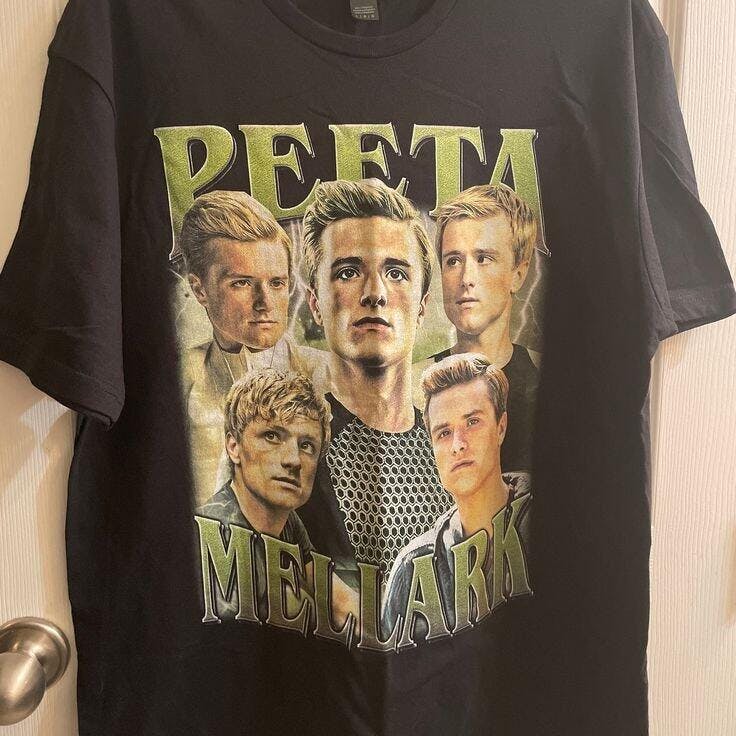 Celebrate your love for The Hunger Games with this vintage-inspired Peeta Mellark t-shirt. Crafted for both men and women, this unisex design features classic styling that appeals to devoted fans of the beloved series. The comfortable fit and quality fabric make it perfect for everyday wear or as a thoughtful gift for any Hunger Games enthusiast. Whether you're rewatching the films or showing your fandom pride, this versatile tee delivers timeless appeal with a literary edge.