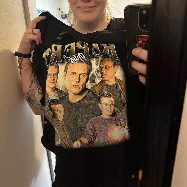 Celebrate the iconic librarian and mentor from Buffy the Vampire Slayer with this vintage-inspired t-shirt featuring Rupert Giles. Crafted for fans who appreciate the show's enduring legacy, this unisex design delivers comfort and style in equal measure. The distressed vintage aesthetic captures the essence of 90s television nostalgia, making it perfect for casual wear or as a thoughtful gift for devoted Buffy enthusiasts. Premium quality fabric ensures durability through countless wears, while the classic fit flatters all body types. Whether you're rewatching the series or simply want to showcase your fandom, this tee is an essential addition to any collector's wardrobe.