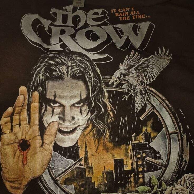 Embrace iconic 90s cinema with this vintage-inspired The Crow unisex t-shirt. Featuring classic movie artwork, this limited-edition tee celebrates the cult classic film with timeless...